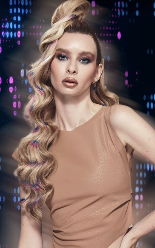 This year’s theme, Digital Prism, explores the fusion of human creativity and machine-driven evolution. Inspired by AI’s precision and the raw artistry of stylists, it redefines beauty with hyper-dimensional color shifts, weightless textures, and futuristic contrasts. Deep obsidian flickers with violet, teal, and molten chrome, while barely-there neutrals whisper in muted pearl and cool taupe.